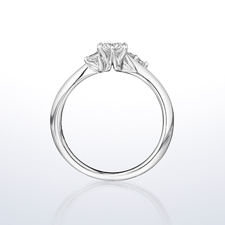 アシンメトリーで流れるような動きのある造り。メレダイヤモンドは、きらめく想いの一つひとつを表しており、躍動感のあるメレダイヤモンドの配置で、これからふたりで作り上げていく未来へのワクワクする気持ちを表現しています。