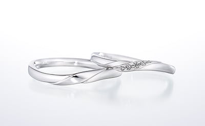 緩やかなウェーブラインで、船が波を越えていく様子を表しています。また、アシンメトリーにセッティングされたメレダイヤモンドの輝きは見る角度によって表情を変えます。