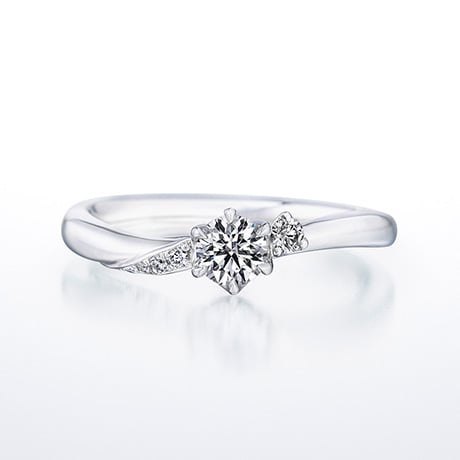 沢山の光が入ることでダイヤモンドの存在感を引き立たせる爪留めと、繊細で上品な煌めきを放つ彫り留めを採用。どちらの輝きも楽しめる上に相手側から見た時に華美すぎないところもポイント。