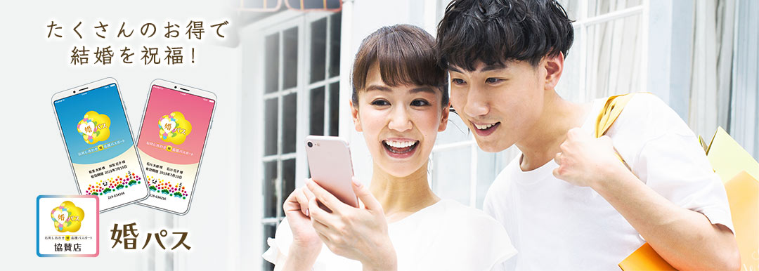 石川県では結婚を予定しているカップルや新婚のご夫婦が利用できるパスポートです。協賛店舗で提示すると、割引など、さまざまな特典・サービスが受けられる「石川しあわせ婚応援パスポート(愛称:婚パス)」を運営しております。